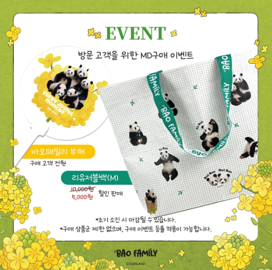 예약시간 10분전부터 바오패밀리 팝업 현장 대기가 가능하며, 현장 운영에 따라서 예약시간보다 입장이 늦어질 수 있습니다.